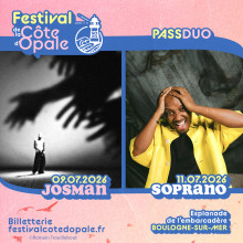 LE FESTIVAL DE LA COTE D'OPALE PRESENTE PASS 2 JOURS : JEUDI 09 et SAMEDI 11 JUILLET 2026 JEUDI 09/07/26 : JOSMAN + LA MANO 1.9 + SHENG SAMEDI 11/07/26 : SOPRANO + 1eres...